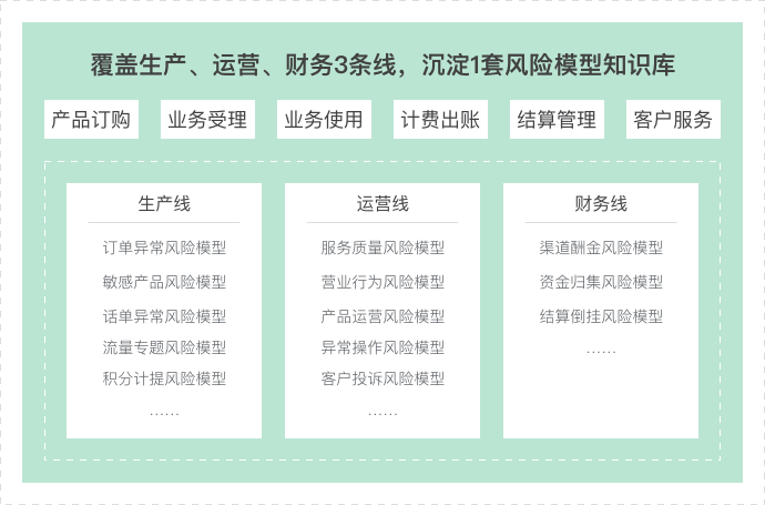 沉淀生产、运营、财务3大业务风险模型知识库,共涉及126个风险点;