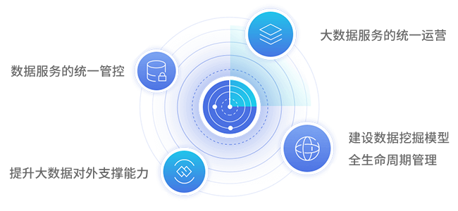 本方案搭建统一的服务能力平台, 打造统一运营接口及服务门户, 集成大数据平台的能力,对外提供大数据服务, 并可以对过程进行运营管理和监控。
